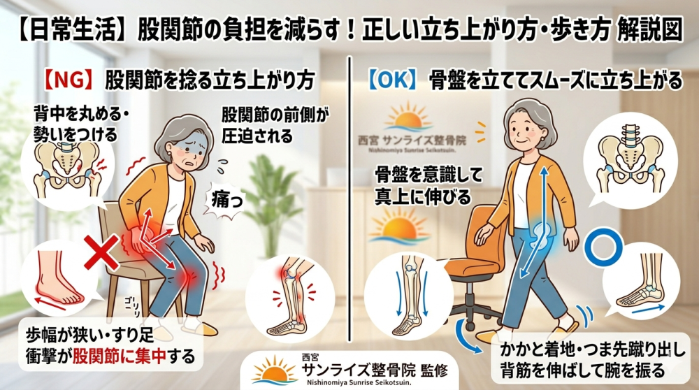 故に、股関節の痛みや、場合によっては股関節の変形を助長する可能性があります。