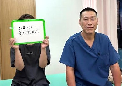 「歩くのが楽になりました」 ![]() お悩み:脊柱管狭窄症で歩きずらい、めまい 20年前から脊柱管狭窄症やめまいで、大好きな社交ダンスや民謡もやめ、家事もできませんでした。 診てもらって歩くのが楽になりました。先生のいう事を真面目に聞いてやっていきます! |
